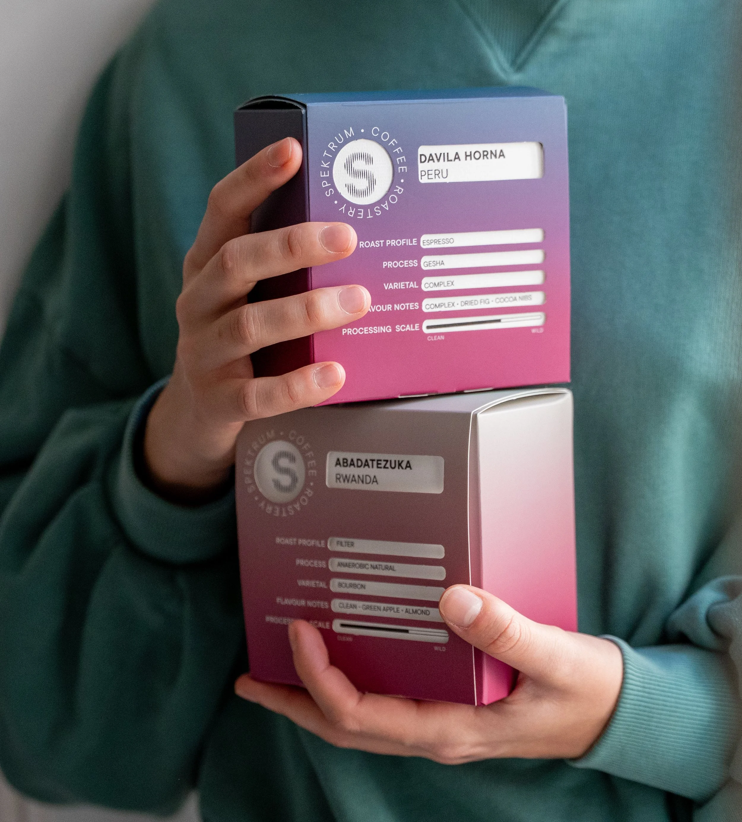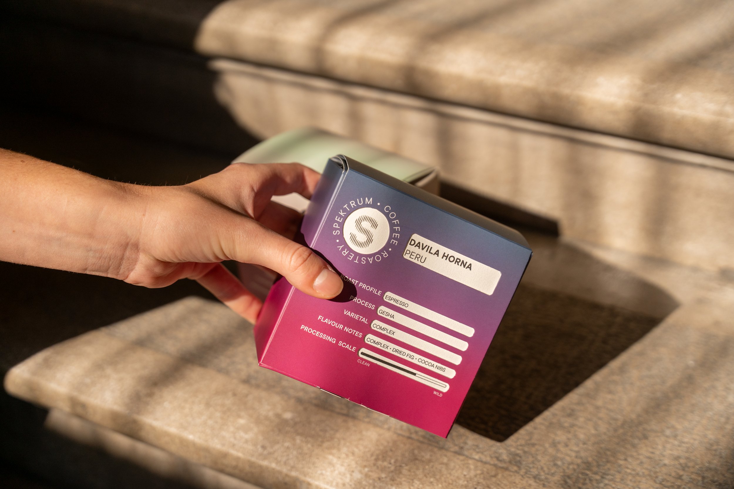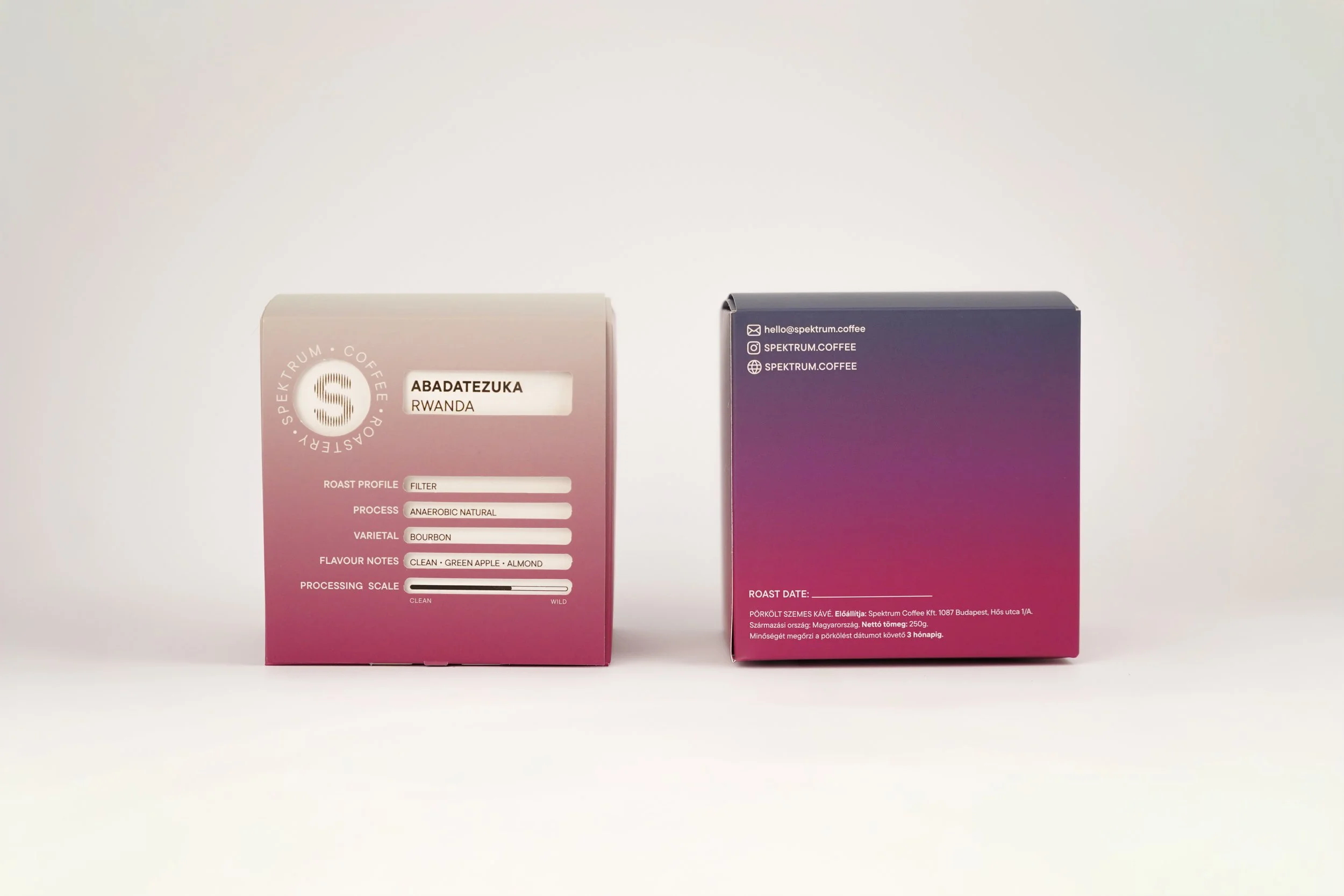 A márkanévből és a Spektrum ambícióiból inspirációt merítve a dobozok is a színképet jelenítik meg, két változatban, így kaptak könnyen megkülönböztethető csomagolást az espresso és a filterkávék.