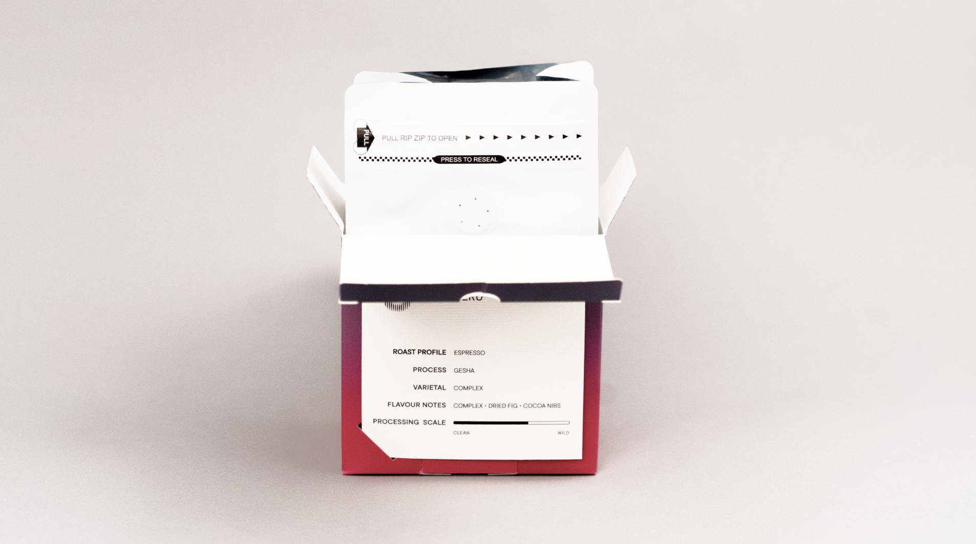 A fajták, a származási hely és egyéb információk a dobozokban, cserélhető kártyán találhatóak, így nem kell minden egyes típusnak teljesen új csomagolás, mégis jól követhetőek. A stancolt ablakok a specialty kávézók gyorsan megújítható menüit is idézik vizuális világukban.