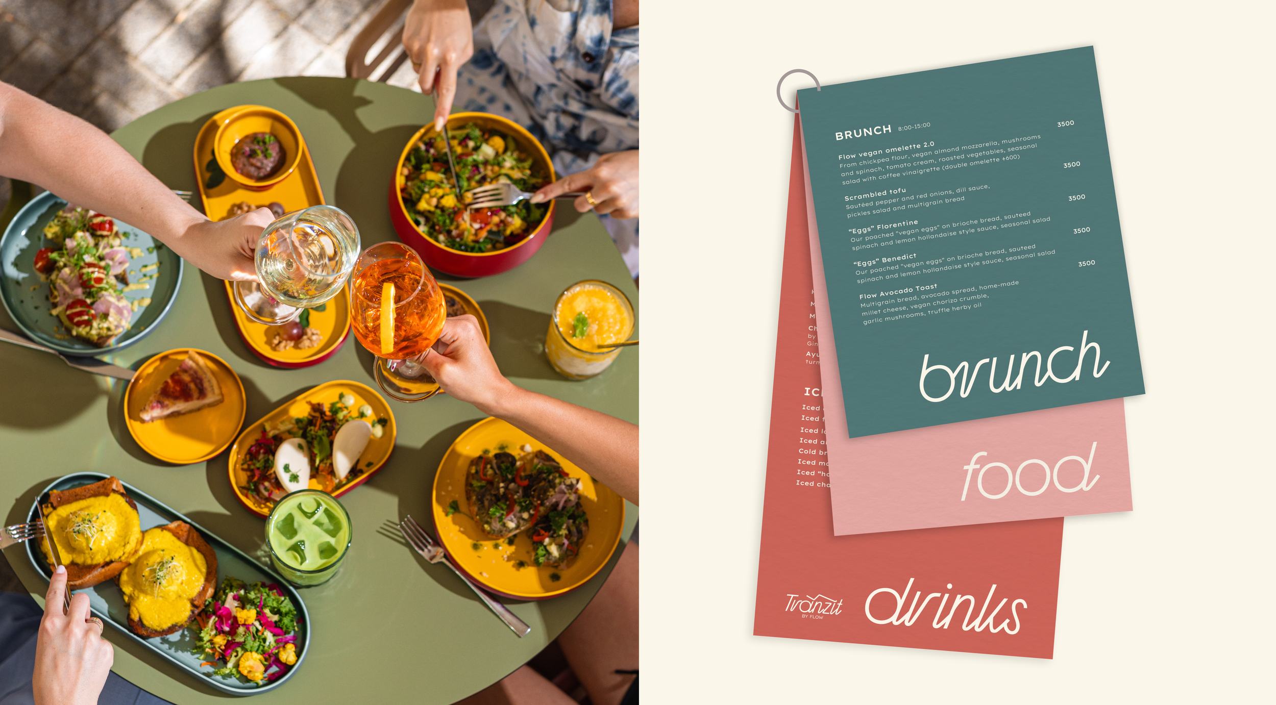 A Tranzit by Flow egy növényi alapú kávézó és étterem, amelyhez teljes körű arculatmegújítást készítettünk: új logót, vizuális identitást és kommunikációs stílust terveztünk.