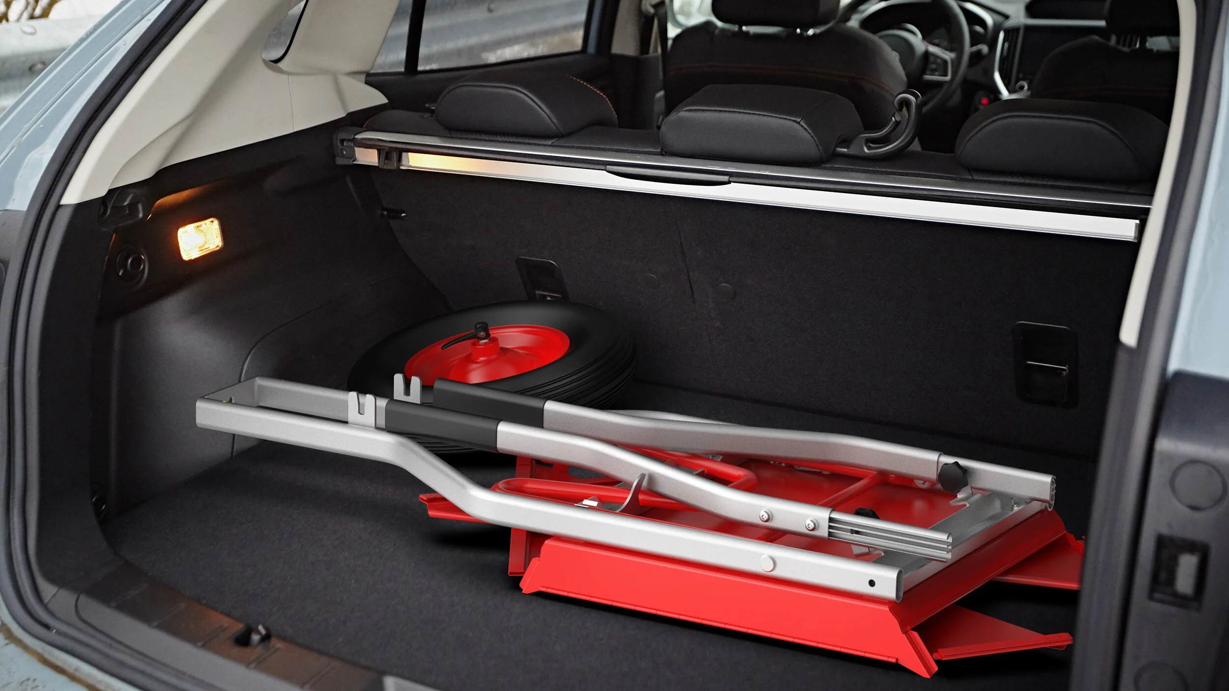 Könnyű összecsukni, szétszerelni, tárolni és javítani. A sarkokon lévő kapcsok kiakasztásával könnyen lapra szerelhető, kereke leszedhető a még nagyobb helytakarékosság érdekében. Ebben a zárt állapotában az oldalakat erős mágnesek fixálják. A Frend könnyű alumíniumból készült, lapra szerelt állapotában tökéletesen elfér bármilyen tetőcsomagtartón, a csomagtartóban vagy a garázsban anélkül, hogy túl nagy helyet foglalna.